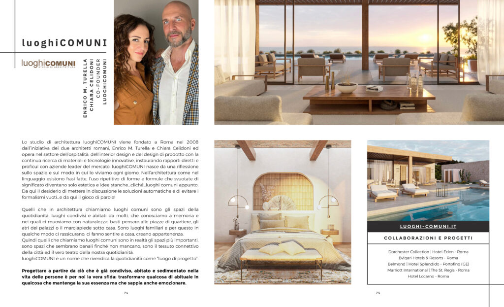 Lo studio di architettura luoghiCOMUNI è stato selezionato tra i 50 studi italiani più influenti nell’ambito dell’interior design per l’hospitality, entrando ufficialmente nella Guida Top 50 Hospitality Interior Designers promossa da Teamwork Hospitality.