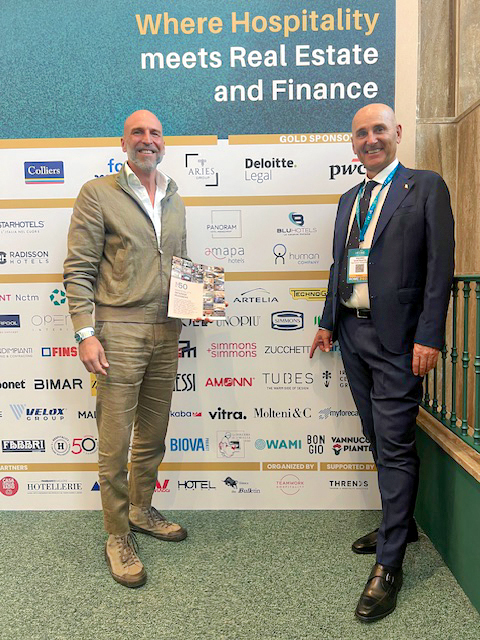 La Guida Top 50 Interior Designer è stata presentata all’esclusivo Hotel Villa Pamphili di Roma in occasione dell’appuntamento con Ithic, un evento interamente dedicato a investimenti e real estate nel settore alberghiero, dove l’Arch. Enrico Maria Turella ha ricevuto la rivista dalle mani di Mauro Santinato, Founder & CEO di Teamwork Hospitality.