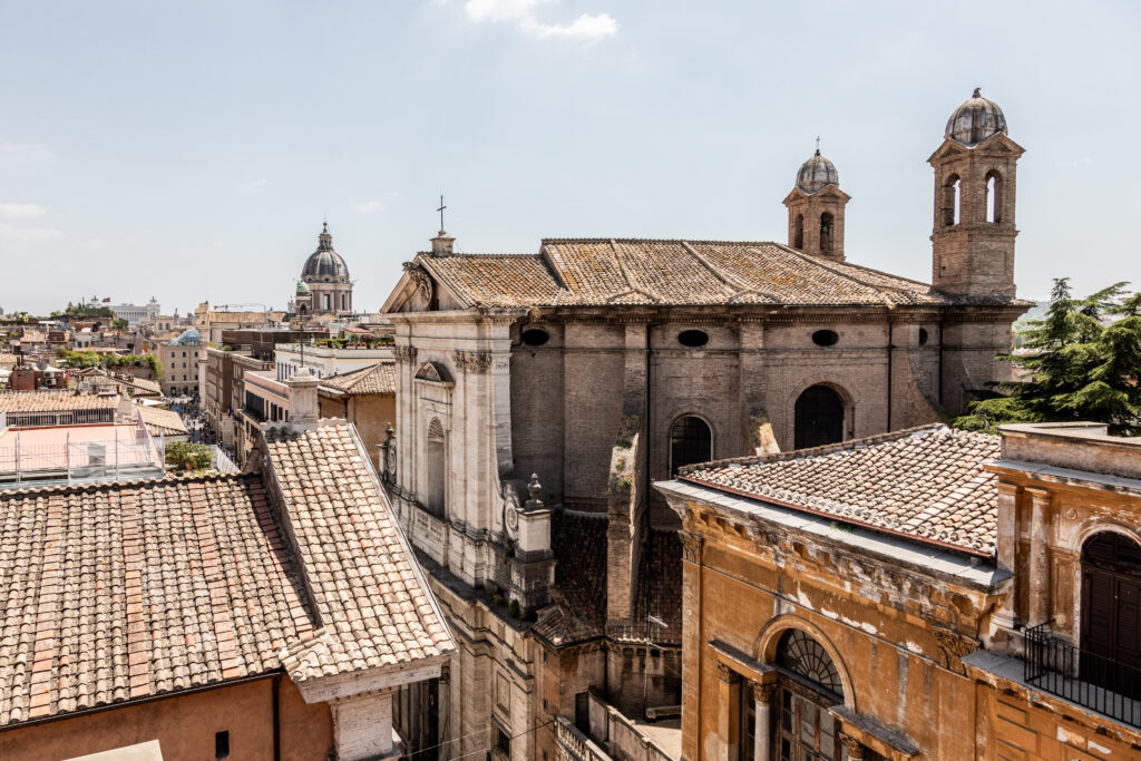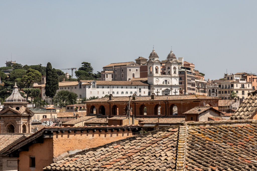 Nel cuore pulsante di Roma, sospeso tra cielo e terra, un attico su Via del Corso si apre come un mirador privato sulla città eterna. Da qui, lo sguardo abbraccia i tetti color ocra, le cupole delle chiese barocche e l’inconfondibile geometria di Piazza del Popolo, con le sue chiese gemelle e l’obelisco che svetta al centro come un ago che cuce la memoria del tempo.