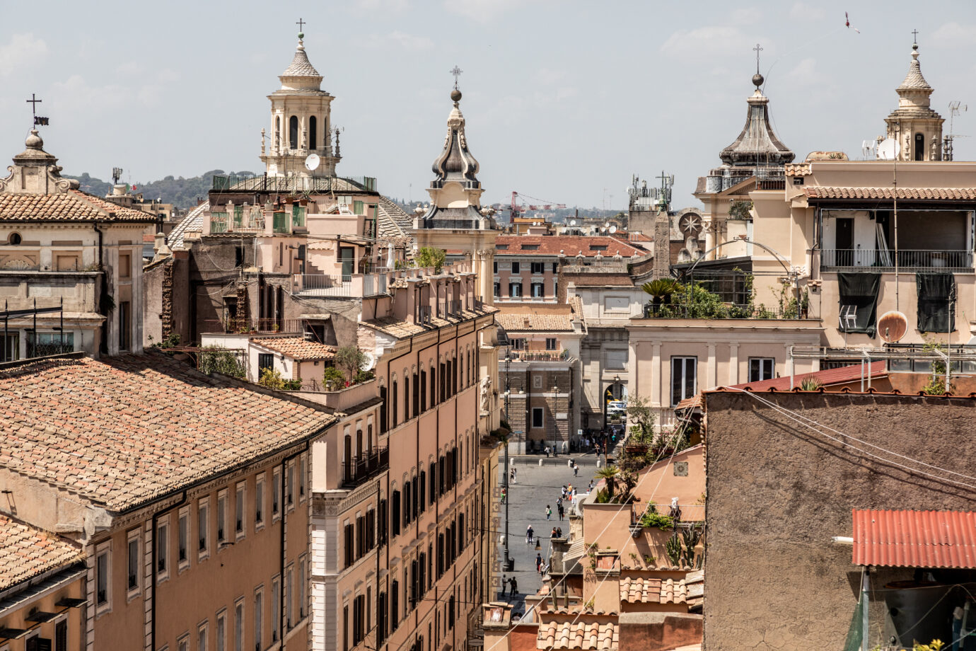 Nel cuore pulsante di Roma, sospeso tra cielo e terra, un attico su Via del Corso si apre come un mirador privato sulla città eterna. Da qui, lo sguardo abbraccia i tetti color ocra, le cupole delle chiese barocche e l’inconfondibile geometria di Piazza del Popolo, con le sue chiese gemelle e l’obelisco che svetta al centro come un ago che cuce la memoria del tempo.